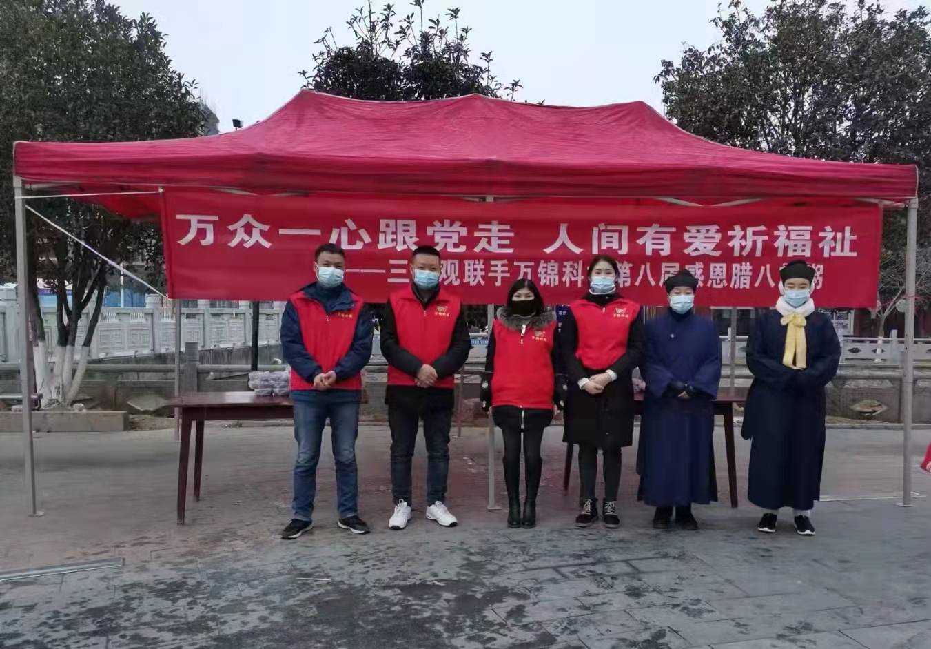 2022年1月10日臘八節(jié),萬錦科技攜手武當(dāng)山下院三元觀,為沙洋縣福利院、多寶福利院、環(huán)衛(wèi)工人、社會人員奉獻(xiàn)愛心,施粥送物。