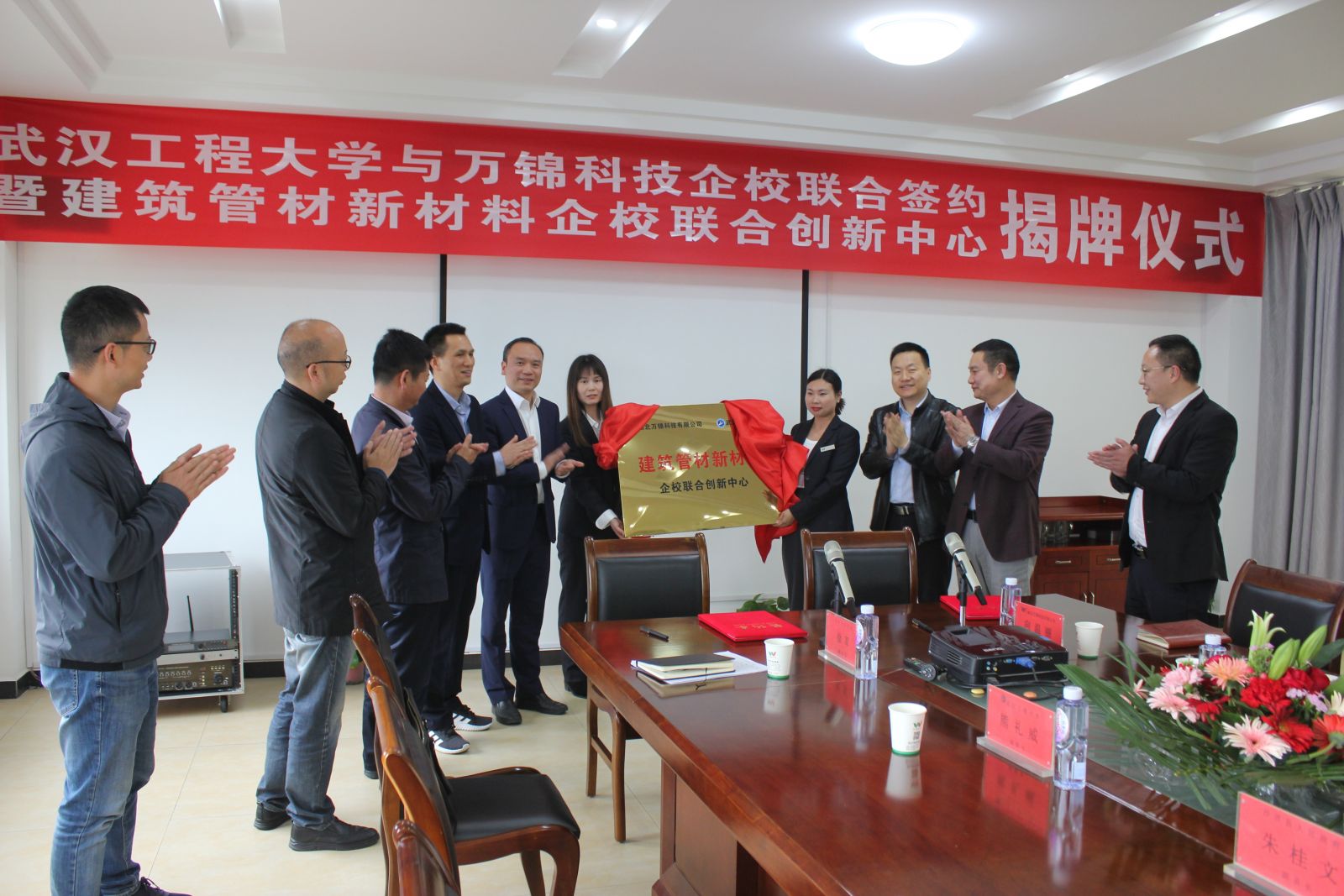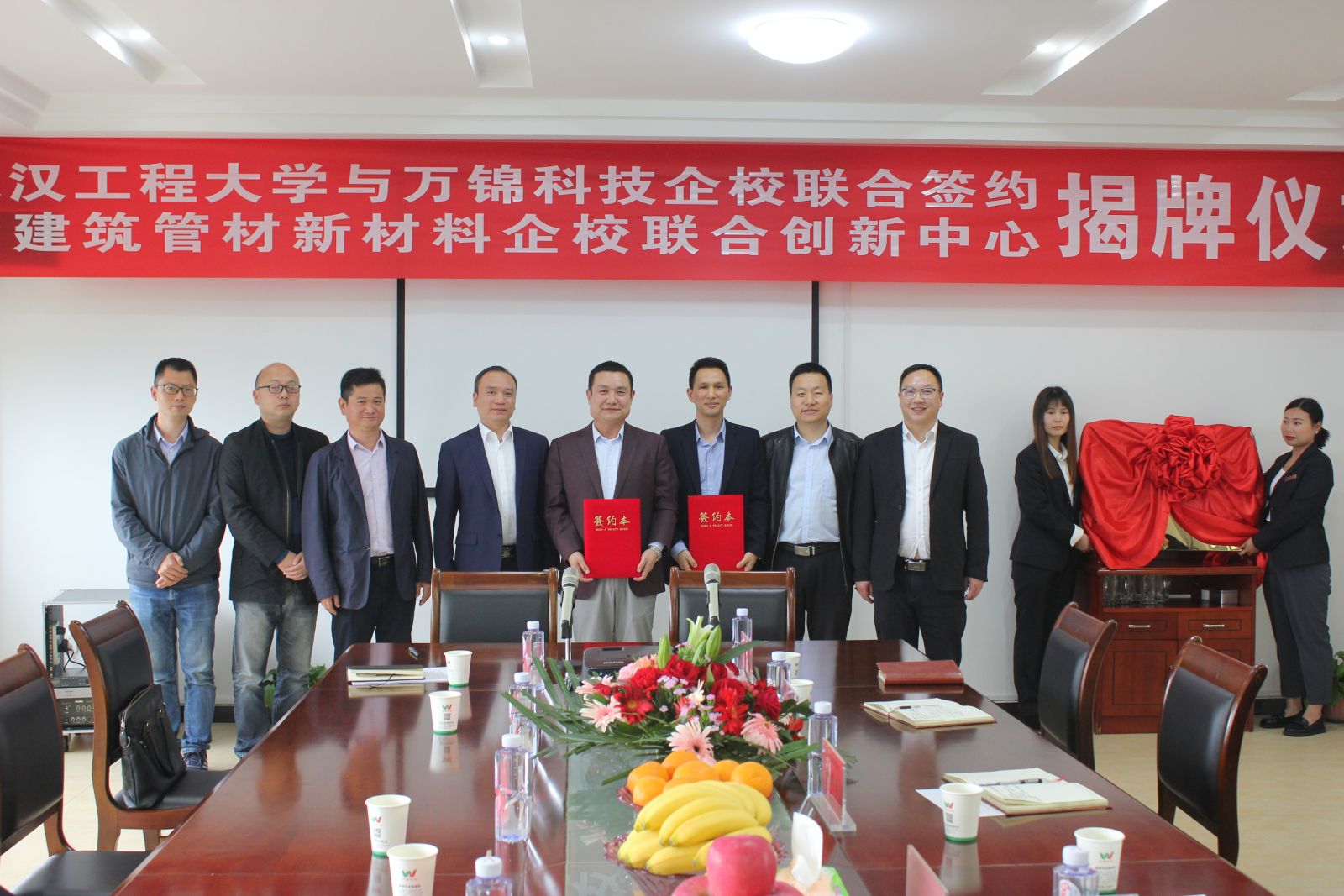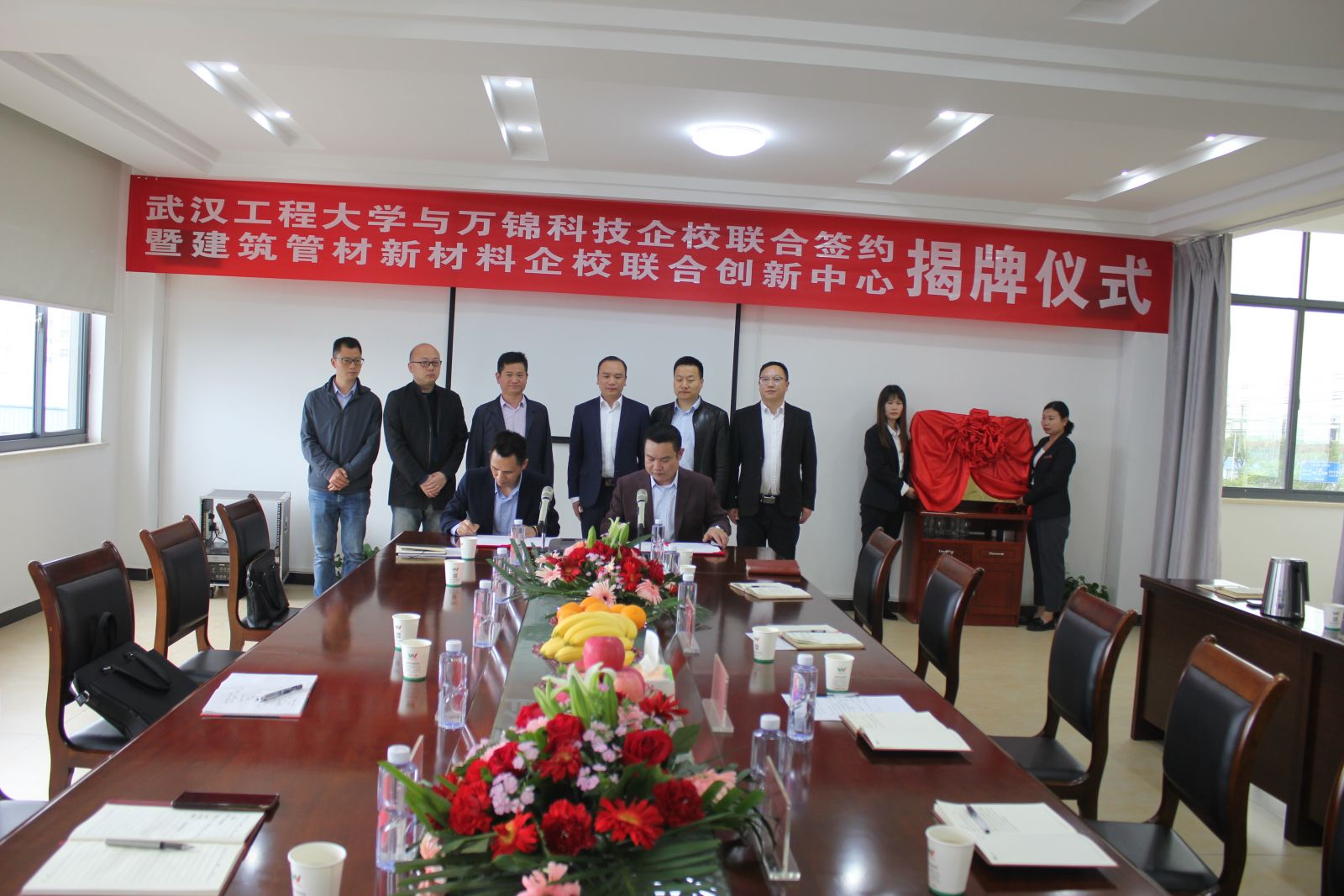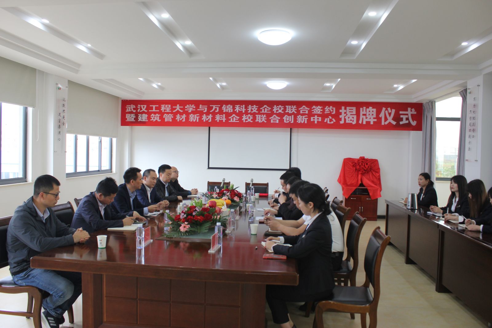 4月28日,湖北萬錦科技有限公司與武漢工程大學(xué)企校合作簽約暨建筑管材新材料企校聯(lián)合創(chuàng)新中心揭牌儀式在我司隆重舉行。武漢工程大學(xué)材料學(xué)院副院長熊禮威 、教授杜飛鵬、老師張云飛;沙洋縣人民政府副縣長朱桂文、沙洋縣科經(jīng)局黨委書記肖華峰、沙洋縣科經(jīng)局副局長徐軍;公司相關(guān)部門負責人出席簽約及揭牌儀式。
