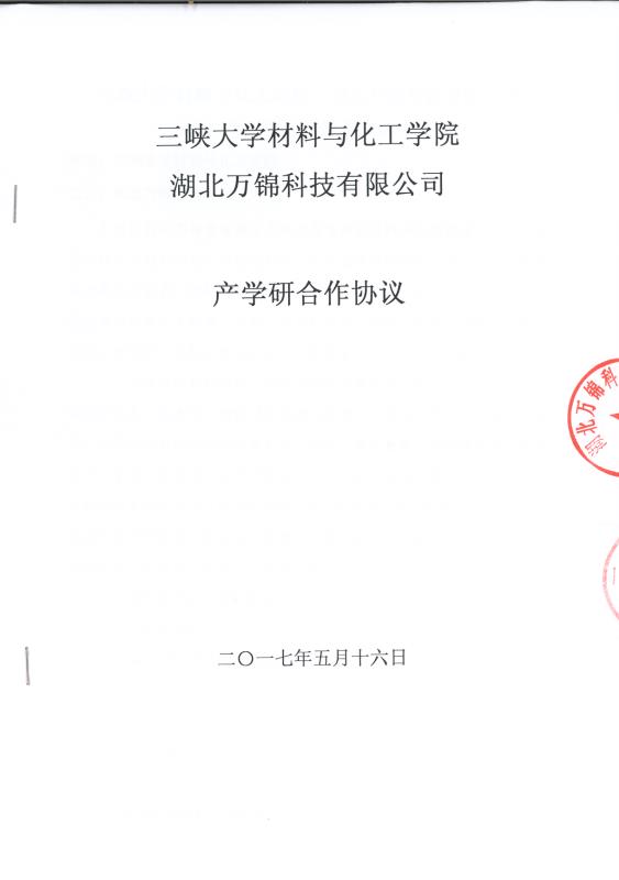2017年5月22日,萬(wàn)錦科技生產(chǎn)部總監(jiān)張艷平、財(cái)務(wù)部經(jīng)理向溫麗、辦公室主任韓亞平、后勤部主管彭兵一行在董事長(zhǎng)夏祥義的帶領(lǐng)下來(lái)到湖北三峽大學(xué)學(xué)習(xí)考察并與三峽大學(xué)材料與化工學(xué)院簽訂了校企合作合同。