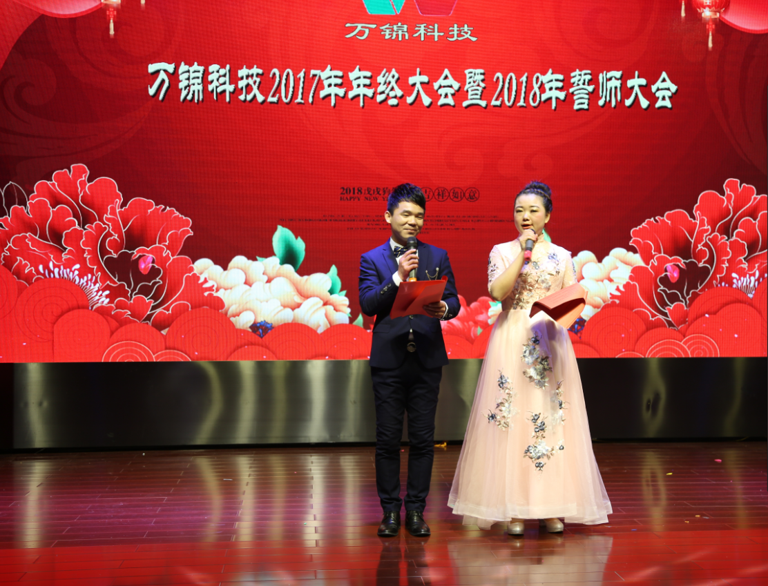 “歡聲辭舊歲,笑語迎新年”2018年1月25日晚,湖北萬錦科技有限公司在沙洋江漢明珠國際酒店承辦了一場以“同心同行,共創(chuàng)未來”為主題的2017年年終大會暨2018年誓師大會。
