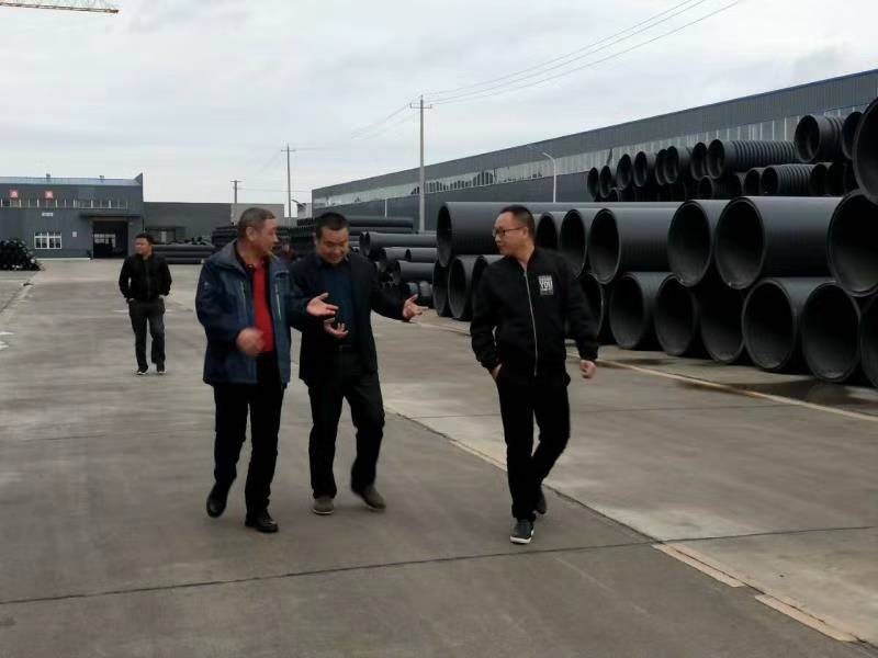 在聽取我公司的生產(chǎn)能力以及遠景規(guī)劃介紹后,武漢市水務(wù)局工程公司對我公司的發(fā)展將繼續(xù)關(guān)注并給予更大的支持,希望我公司充分利用新技術(shù)、新材料企業(yè)發(fā)展的各項有利政策,繼續(xù)在HDPE中空壁纏繞管、HDPE雙壁波紋管、MPP電力管、梅花管、PPR、PVC家裝管材管道領(lǐng)域開拓創(chuàng)新,打造具有行業(yè)品牌的知名產(chǎn)品,也為國家管道行業(yè)的發(fā)展做出更大的貢獻。