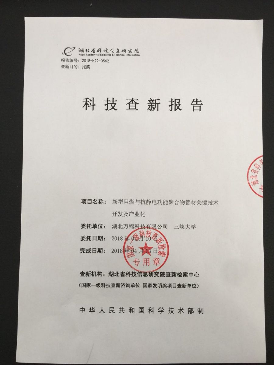 ?新型阻燃與抗靜電功能聚合物管材關(guān)鍵技術(shù)開發(fā)及產(chǎn)業(yè)化的查新報(bào)告!