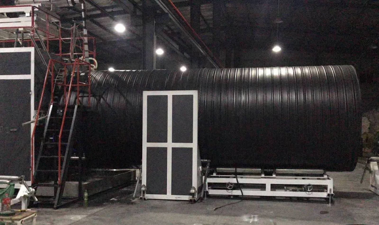 2018年5月5日, 湖北萬錦科技有限公司在所有員工與專業(yè)設(shè)備安裝技術(shù)工的共同奮戰(zhàn)下,DN2200大口徑HDPE中空壁纏繞管正式生產(chǎn),填補(bǔ)了華中市場(chǎng)中空壁纏繞管的空缺。