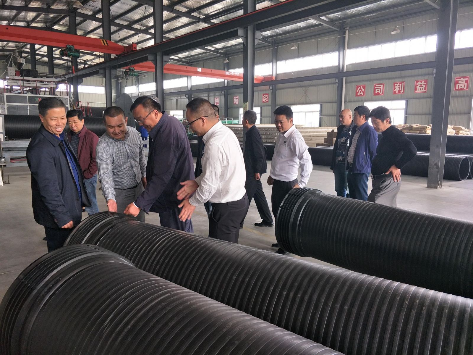 2018年10月18日,咸寧市住房和城鄉(xiāng)建設(shè)委員會(huì)相關(guān)領(lǐng)導(dǎo)一行14人到我司進(jìn)行考察交流,公司董事長(zhǎng)夏祥義率公司相關(guān)部門(mén)負(fù)責(zé)人陪同咸寧市住建委相關(guān)領(lǐng)導(dǎo)一行參觀了我司的波紋管生產(chǎn)車(chē)間、纏繞管生產(chǎn)車(chē)間、檢測(cè)中心等,夏祥義對(duì)咸寧市住建委考察組蒞臨公司考察指導(dǎo)工作表示熱烈歡迎,并就公司的基本情況、生產(chǎn)管理理念以及發(fā)展規(guī)劃向考察組做了詳細(xì)介紹。夏祥義指出,公司堅(jiān)持以“誠(chéng)信惠譽(yù)、創(chuàng)新進(jìn)取、綠色環(huán)保、安全為首、質(zhì)量為本、品質(zhì)為上”的經(jīng)營(yíng)管理理念,近年來(lái)取得了良好的經(jīng)營(yíng)業(yè)績(jī),并從三個(gè)方面做了經(jīng)驗(yàn)介紹: