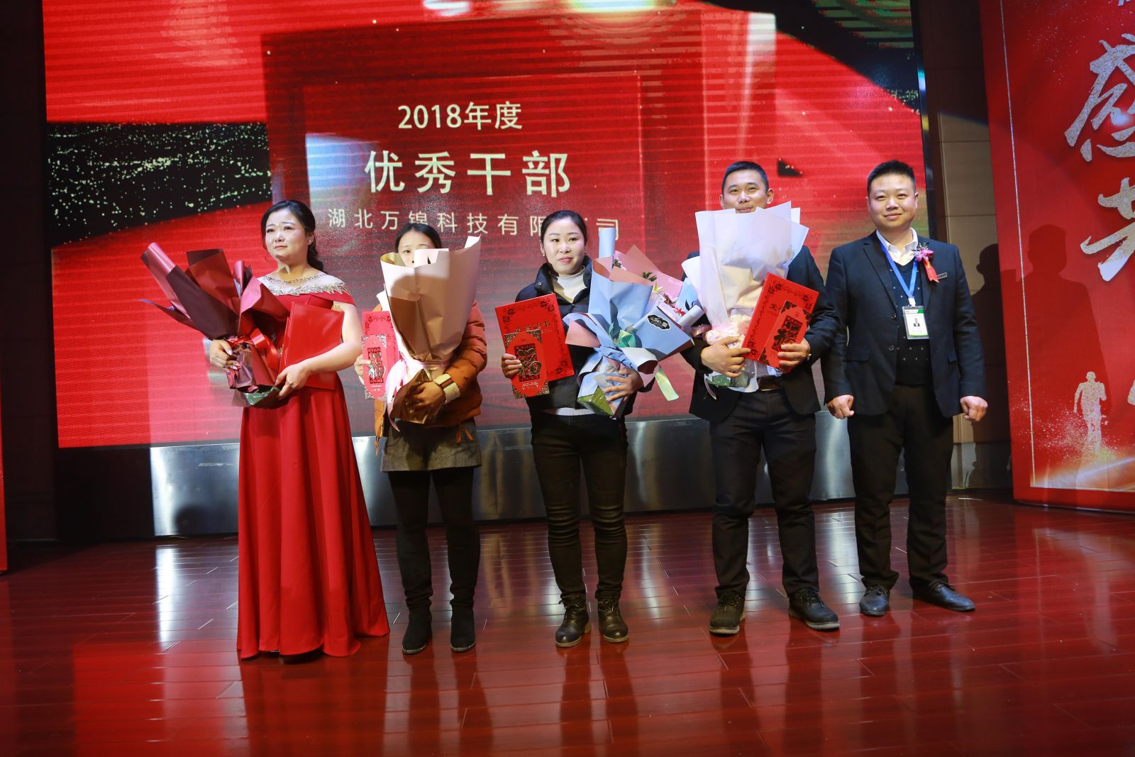 年會(huì)由表彰先進(jìn)、回顧過(guò)去、展望未來(lái)和聯(lián)歡文藝表演三大板塊組成。在第一板塊中,公司表彰并獎(jiǎng)勵(lì)了2018年年度在公司各項(xiàng)工作中有突出表現(xiàn)及貢獻(xiàn)的先進(jìn)個(gè)人和集體。2018年公司還特別設(shè)立“萬(wàn)錦之星”獎(jiǎng),表彰為公司做出重大貢獻(xiàn)的個(gè)人,獲得者將獲得終生養(yǎng)老及醫(yī)療保障。同時(shí),公司也贈(zèng)授了2018年年度優(yōu)秀供應(yīng)商、忠誠(chéng)經(jīng)銷(xiāo)商、卓越經(jīng)銷(xiāo)商獎(jiǎng)杯,感謝各級(jí)經(jīng)銷(xiāo)商、供應(yīng)商與我們?cè)诿媾R市場(chǎng)競(jìng)爭(zhēng)巨大的壓力與挑戰(zhàn)下,相濡以沫、攜手作戰(zhàn)、不畏艱難、勇往直前。